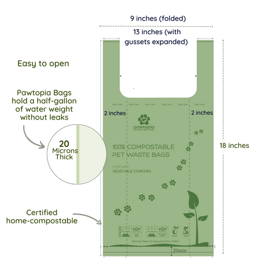 Pawtopia Certified Home Compostable Pet Waste Bags (Standard size, 200 Bags, Single Roll)