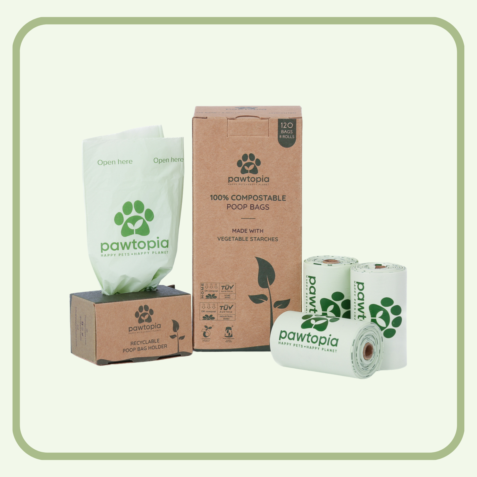 Zero-waste, better tomorrow: In addition to our biodegradable dog poop bags, Pawtria's packaging box and roll cores are also fully recyclable.