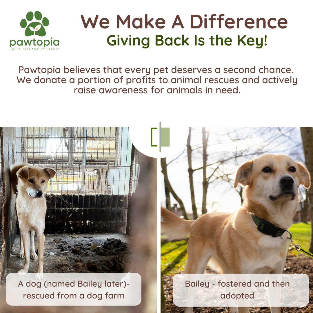 Giving back: Pawtria is committed to donating a portion of profits to rescue organizations. Moreover, we are also actively involved to raise awareness and support the adoption process for rescue animals.